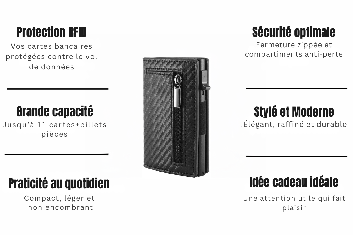 🔒 Sécurité RFID – Bloque efficacement les tentatives de vol sans contact pour protéger vos données bancaires.